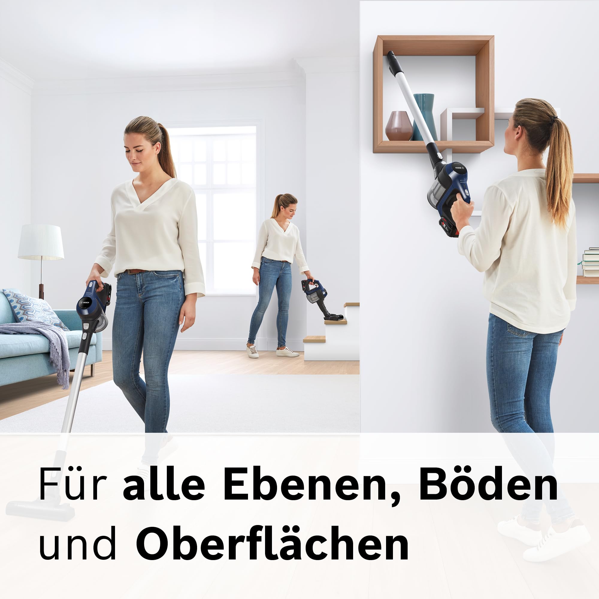 Bosch Akku-Staubsauger Unlimited 6 BBS611PCK, kabellos, beutellos, leicht, hohe Saugleistung, lange Laufzeit, Fugendüse, alle Bodenarten, blau.