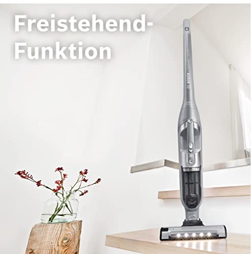 Bosch Akku-Staubsauger Flexxo 2 in 1 Serie 4 BBH3K2801, kabellos, beutellos, hohe Saugleistung, lange Laufzeit, LED-Düse, alle Bodenarten, silber.