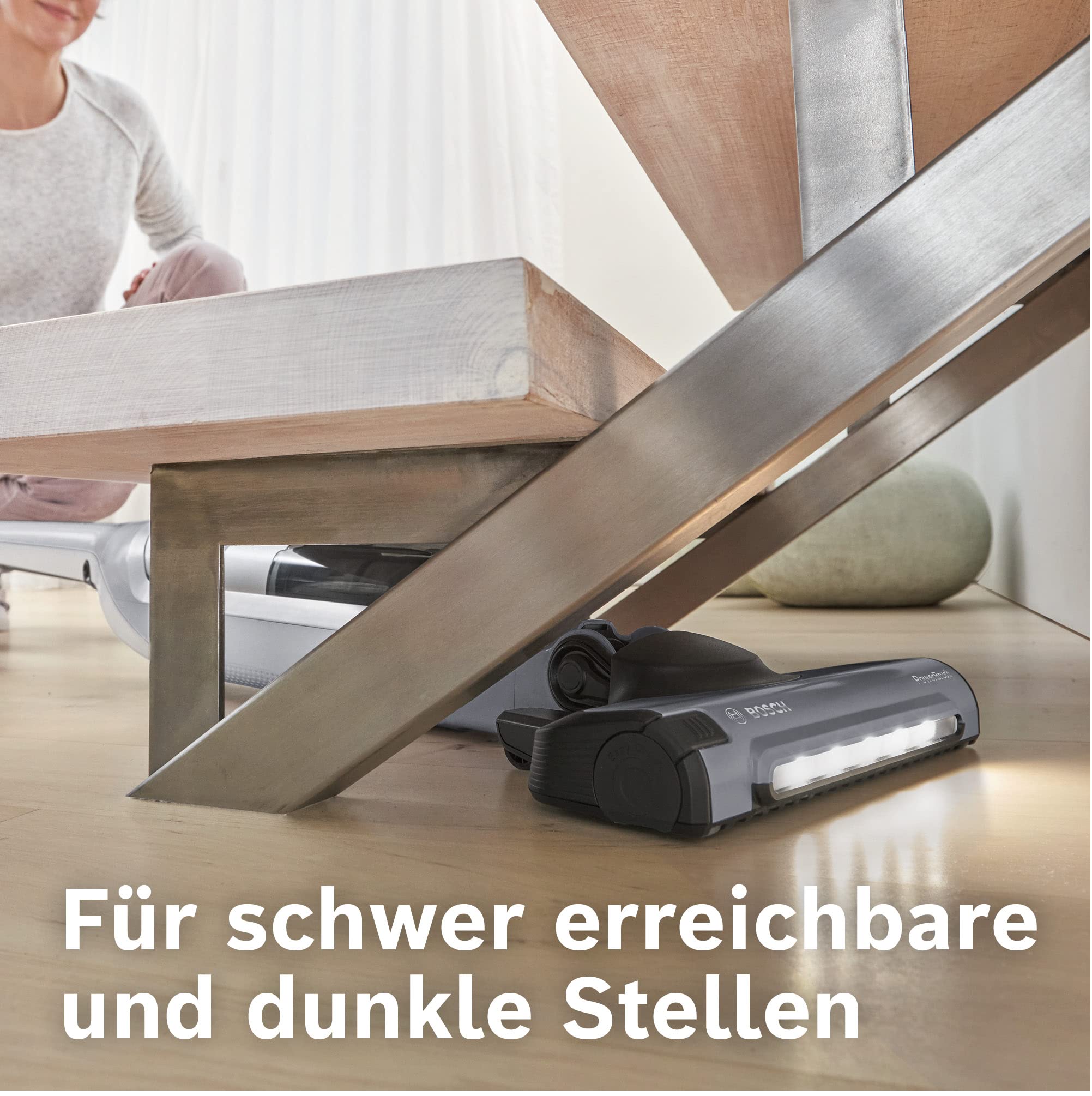 - Düse für alle Böden mit LED-Licht: Beseitigen Sie Schmutz und Staub auf Holz-, Fliesen- und Hartböden, Teppich, Treppen und dank LED-Licht auch an dunklen Stellen