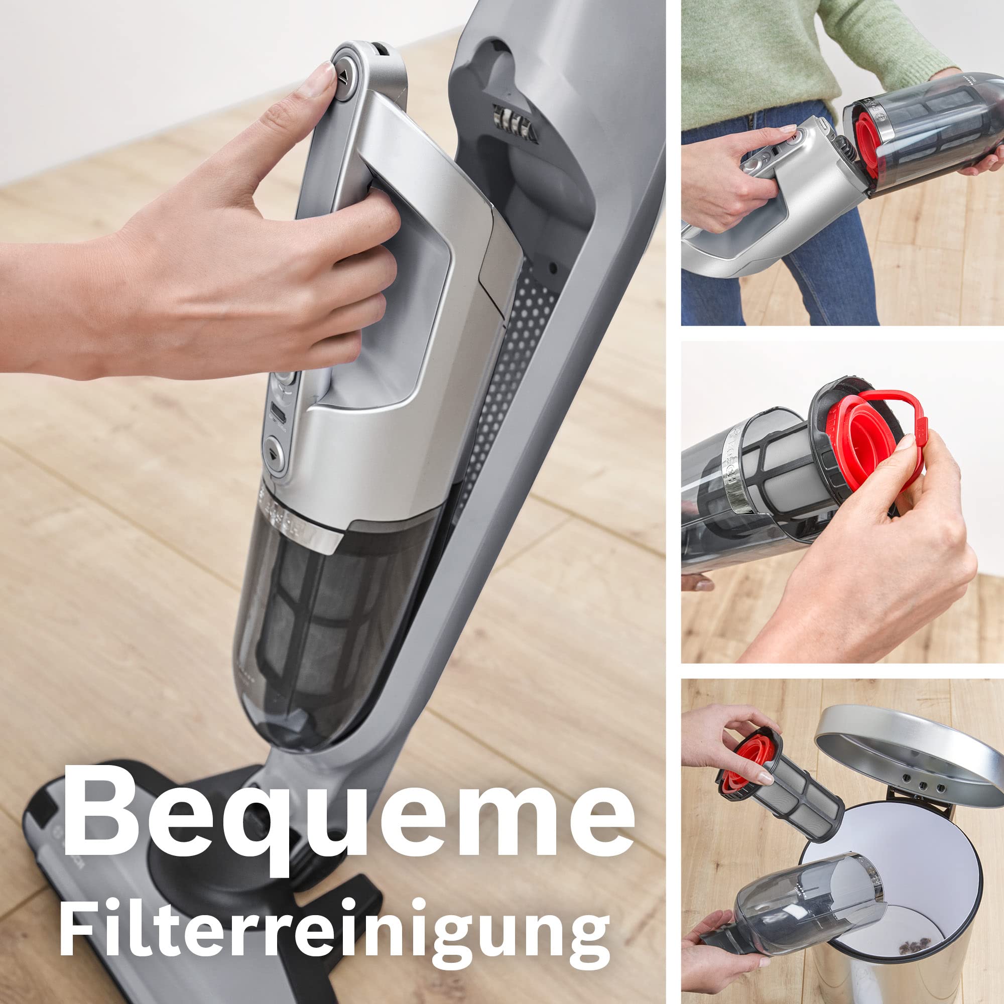 - Praktisches 2in1-Gerät: Wechseln Sie im Nu vom Akkustaubsauger zum Handstaubsauger und saugen Sie Böden und z.B. Tische und Sofas in einem Schritt