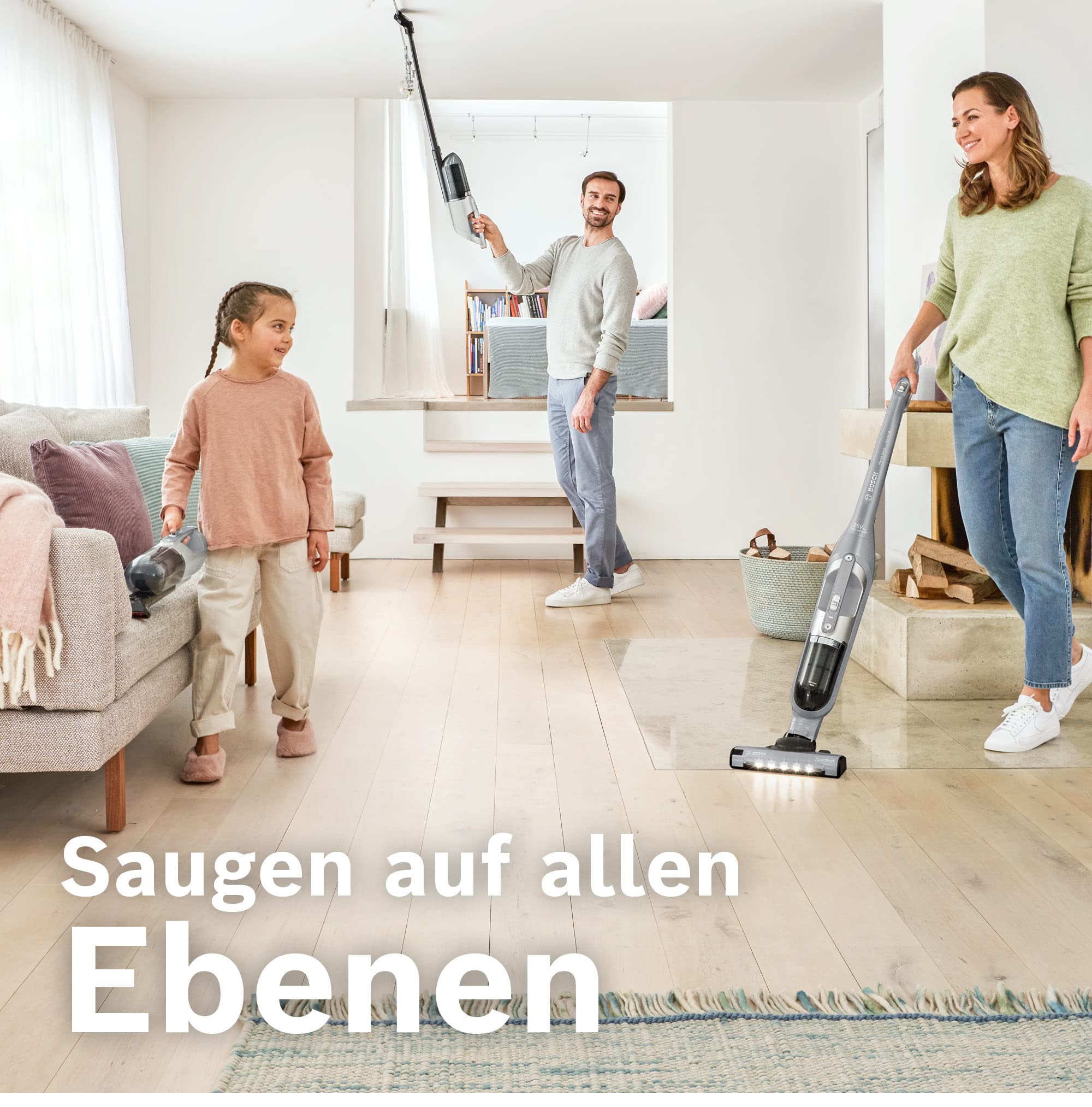 Einzelheiten: Der kabellose 2in1 Staubsauger von Bosch ist ideal für die Reinigung zwischendurch und bietet hezu unbegrenzte Freiheit und hohe Flexibilität. Der integrierte Handstaubsauger ist einfach abzunehmen und sofort einsatzbereit um Krümel vom Tisch, Chips vom Sofa oder Staub von den Möbeln zu entfernen. Das kombinierbare Zubehör ist direkt im Gerät integriert und somit immer griffbereit perfekt für die schnelle und ergonomische Reinigung. Ein weiteres Highlight: Die Fugendüse ist ausziehbar und erleichtert das Reinigen von schwer zugänglichen Stellen, wie zum Beispiel hinter Möbeln oder an der Zimmerdecke. Die Kombition aus Möbelpinsel und Polsterdüse reinigt selbst sensible Oberflächen und Polstermöbel schonend und gründlich. Da das Zubehör und der Handstaubsauger immer griffbereit sind, ist dieser kabellose Staubsauger perfekt für die schnelle Reinigung aller Oberflächen egal ob Teppiche, Hartböden, Zimmerdecken, Tische, Sofas, Schubladen oder der Innenraum Ihres Autos. Dank der leistungsstarken AllFloor Power Düse mit integrierter LED-Beleuchtung können Sie Schmutz und Staub auch an dunklen Stellen, z.B. unter dem Bett oder dem Sofa sehen und einfach reinigen. Der Flexxo von Bosch lässt sich dank seines schlanken und platzsparenden Designs einfach verstauen und ist besonders leicht. Dank der Freistehend-Funktion kann er überall im Raum für eine Saugpause oder zum Aufladen abgestellt werden. Die Laufzeit von bis zu 55 Minuten wird durch die Bosch Lithium-Ionen-Technologie gewährleistet. Die langlebigen und wiederaufladbaren 28-V-Akkus bieten die perfekte Kombition aus hoher Leistung, Laufzeit und langer Lebensdauer. Produktdetails 2in1: Akku- und Handstaubsauger in einem Gerät Langlebige Akkus mit Bosch Lithium-Ionen-Technologie Bis zu 55 Minuten Laufzeit Praktisches Zubehör direkt am Gerät integriert AllFloor Power Düse mit LED-Beleuchtung und flexiblem Düsengelenk für alle Boderten Einfache Reinigung von Böden, Oberflächen, Zimmerdecken und Auto Lange, ausziehbare Fugendüse 2in1 Möbelpinsel mit Polsterdüse Besonders leicht: 3 kg
