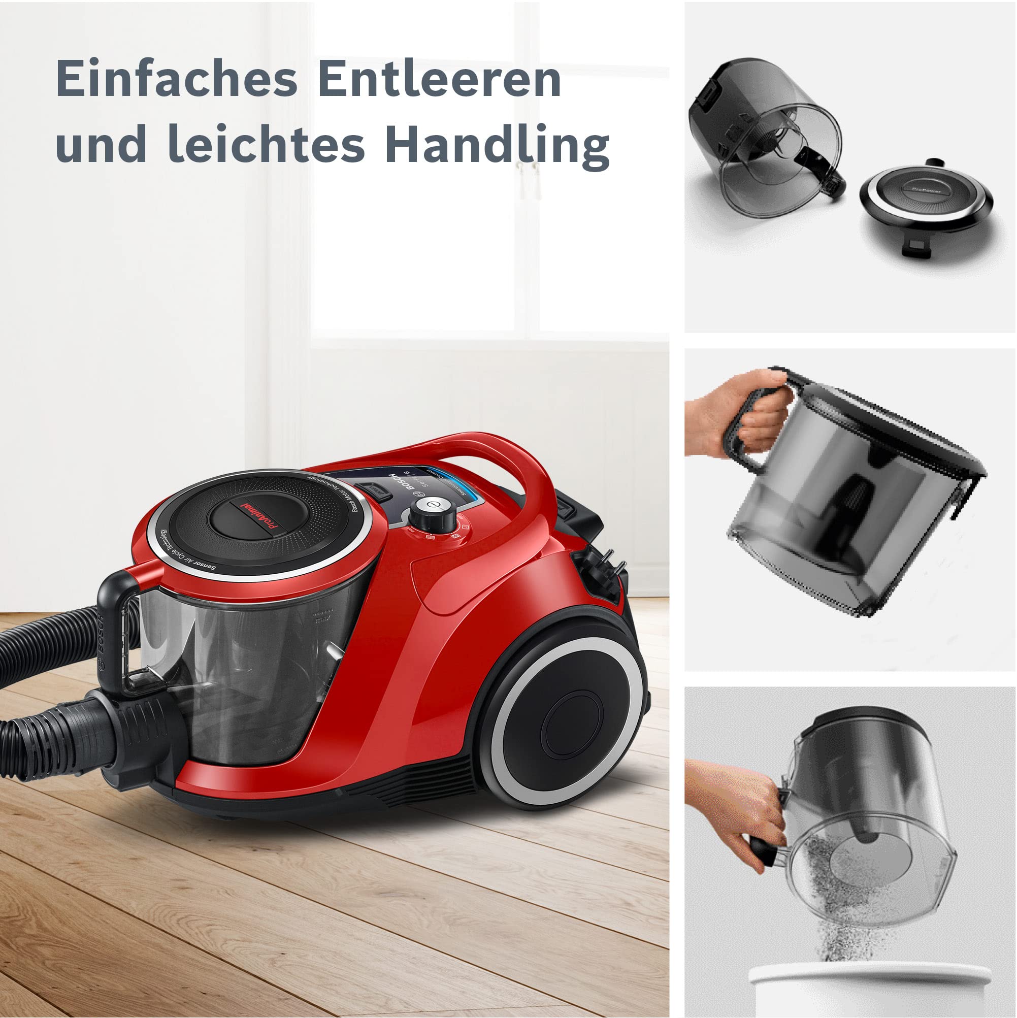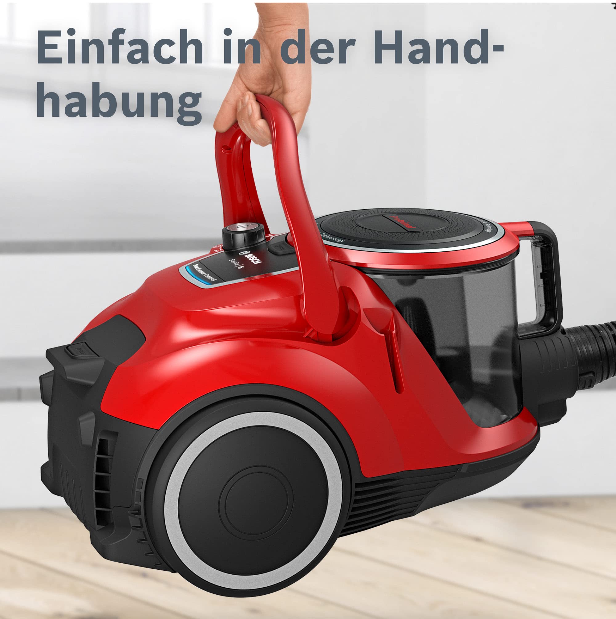 Bosch Serie 6 BGC41PET, beutellos, ideal für Tierhaare, Hygiene-Filter, 10 Jahre Motorgarantie, für Parkett, Teppich, Turbo-Düse, 700 W, rot.